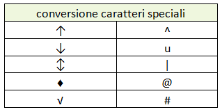 Nella stesura delle istruzioni l'emulatore usa caratteri sostituivi di quelli speciali presenti nella keyboard secondo lo schema:
