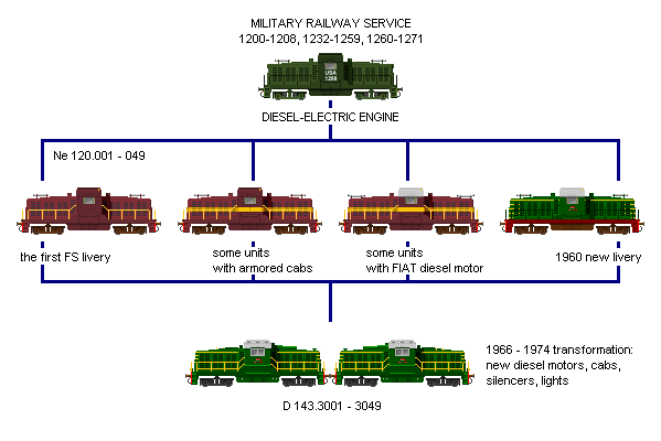 FS D 143 3001-3049 1945 - prima trasformazione alla fine della guerra; alcune unità con motore FIAT first transformation; some units with FIAT motor |