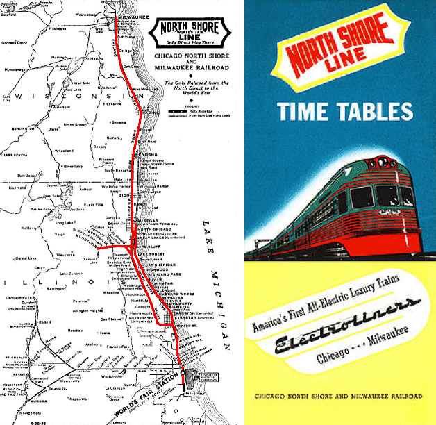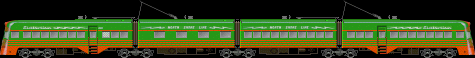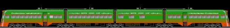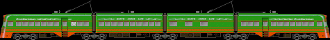 1941 - costruttore St. Louis Car Company Gli Electroliners furono una coppia di eletromotrici tramviarie interurbane gestite dalle compagnie Chicago North Shore e Milwaukee Railroad, e collegavano Chicago, Illinois, e Milwaukee, Wisconsin. Ogni treno era marcato con due numeri, 801-802 e 803-804. Una delle unità centrali era attrezzata a sala ristorante con 26 posti a sedere. Furono progettati per operare in tre distinte situazioni: 1 - con la piattaforma alta, le curve strette e lo stretto interbinario delle linee sopraelevate Chicago Loop e la Chicago 'L', con alimentazione a terza rotaia 2 - per correre alla velocità di 80 miglia orarie (130 km/h) e più sulla principale North Shore, con alimentazione a catenaria e presa di corrente ad asta e rotella 3 - per muoversi sulla tratta tramviaria urbana di Milwaukee fino al capolinea collocato in centro città. 1941 - built by St. Louis Car Company The Electroliners were a pair of electric passenger train sets operated by the Chicago North Shore and Milwaukee Railroad, which ran between Chicago, Illinois, and Milwaukee, Wisconsin. Each train set carried two numbers, 801-802 and 803-804. One of the center units was a Tavern Lounge which seats 26. The Electroliners were cleverly designed to operate in three different environments: 1 - with the high platforms, sharp curves, and narrow clearances of the Chicago Loop and the Chicago 'L', with the elctrical contact by third-rail 2 - to run at speeds of 80 miles per hour (130 km/h) or more on the North Shore's main line, with catenary and trolley pole 3 - to make their way up Milwaukee city streets to the North Shore Milwaukee Terminal in downtown Milwaukee. |